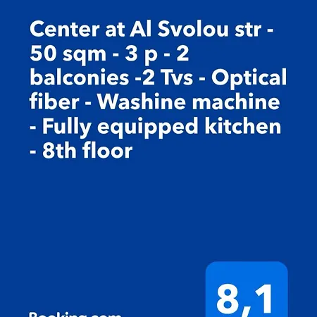 ¡Descubre lo que dicen nuestros huéspedes sobre Center At Al Svolou Str -50 Sqm - 3 P - 2 Balconies -2 Tvs - Optical Fiber - Washine Machine - Fully Equipped Kitchen - 8Th Floor!